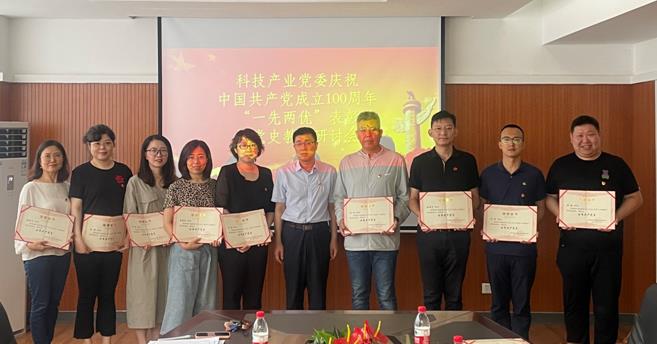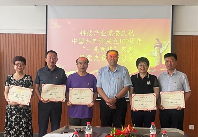 2021年6月30日上午,科技产业党委在科技产业大厦524室召开庆祝中国共产党成立100周年“一先两优”表彰暨党史教育研讨会,党支部书记及获表彰的党员参加会议。表彰会由科技产业党委副书记孟庆旺主持。